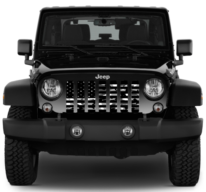 Black and White Camo Flag Grille Insert