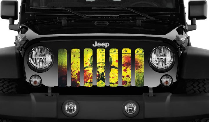 What better way to show how SICK your Jeep is than with a BioHazard version of the American Flag! You're sure to get attention with this insert! Protect the engine compartment of your Jeep from road and off-road hazards that could lead to costly repairs! Made of quality rust resistant, perforated aluminum, your Dirty Acres Grill Insert will keep your jeep safe and allow proper air flow to your engine.