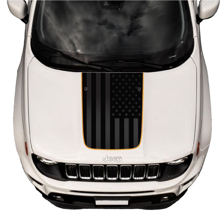 Upgrade the look of your Jeep Renegade with this stylish and functional hood graphic, proudly designed and manufactured in the USA. This graphic is specifically designed to cut out hood glare from the sun shining off your hood while adding a touch of style to your vehicle.
