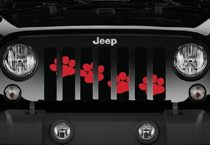 Platinum Puppy Paw Prints - Rubicon Red Diagonal Grille Insert